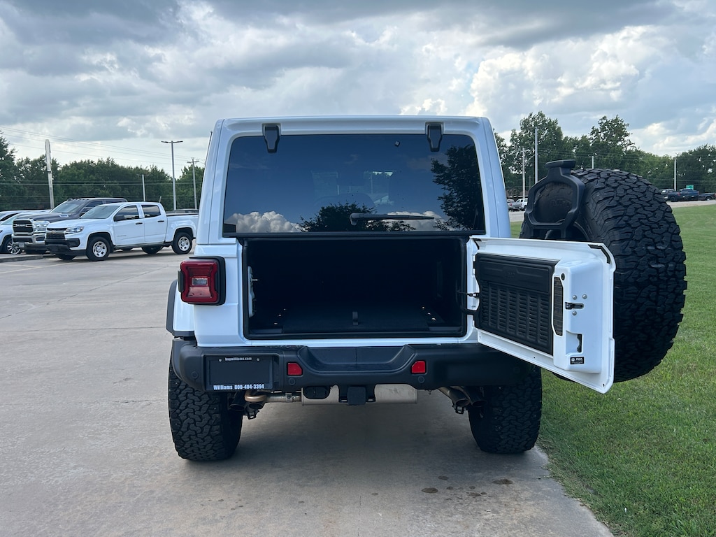 Why shop at Williams Chrysler Dodge Jeep Ram in Stigler, OK? Our people make us different. We are proud to be a family-owned, small town dealership since 1988. We proudly serve our local community with high quality pre-owned vehicles and keep drivers on the road and driving safely for longer. Every vehicle we sell comes with a full tank of gas included, and a 15% off coupon for any parts and accessories that you’d like to have for your vehicle to customize it and truly make it your own. Call us today and find out what we can do to make your pre-owned vehicle shopping experience a special one. We look forward to serving you at Williams Chrysler Dodge Jeep Ram of Stigler! Call us today to find out what we can do to amaze you!An awesome price considering its low mileage! With less than 4,000 miles on the odometer, this 4 door sport utility vehicle prioritizes comfort, safety and convenience. Jeep prioritized comfort and style by including: a trip computer, power windows, and power seats. Under the hood you'll find an 8 cylinder engine with more than 400 horsepower, and for added security, dynamic Stability Control supplements the drivetrain. Four wheel drive allows you to go places you've only imagined.